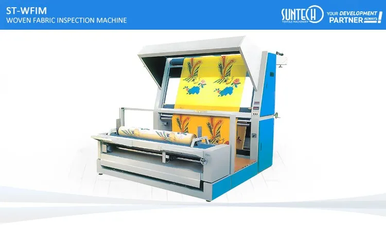 SUNTECH Woven Fabric Rolling Machine with Length Counting is suitable for woven fabric, with accurate fabric length counting and fabric edge controlling. It can be supplied to operate from various fabric inlet and outlet options.