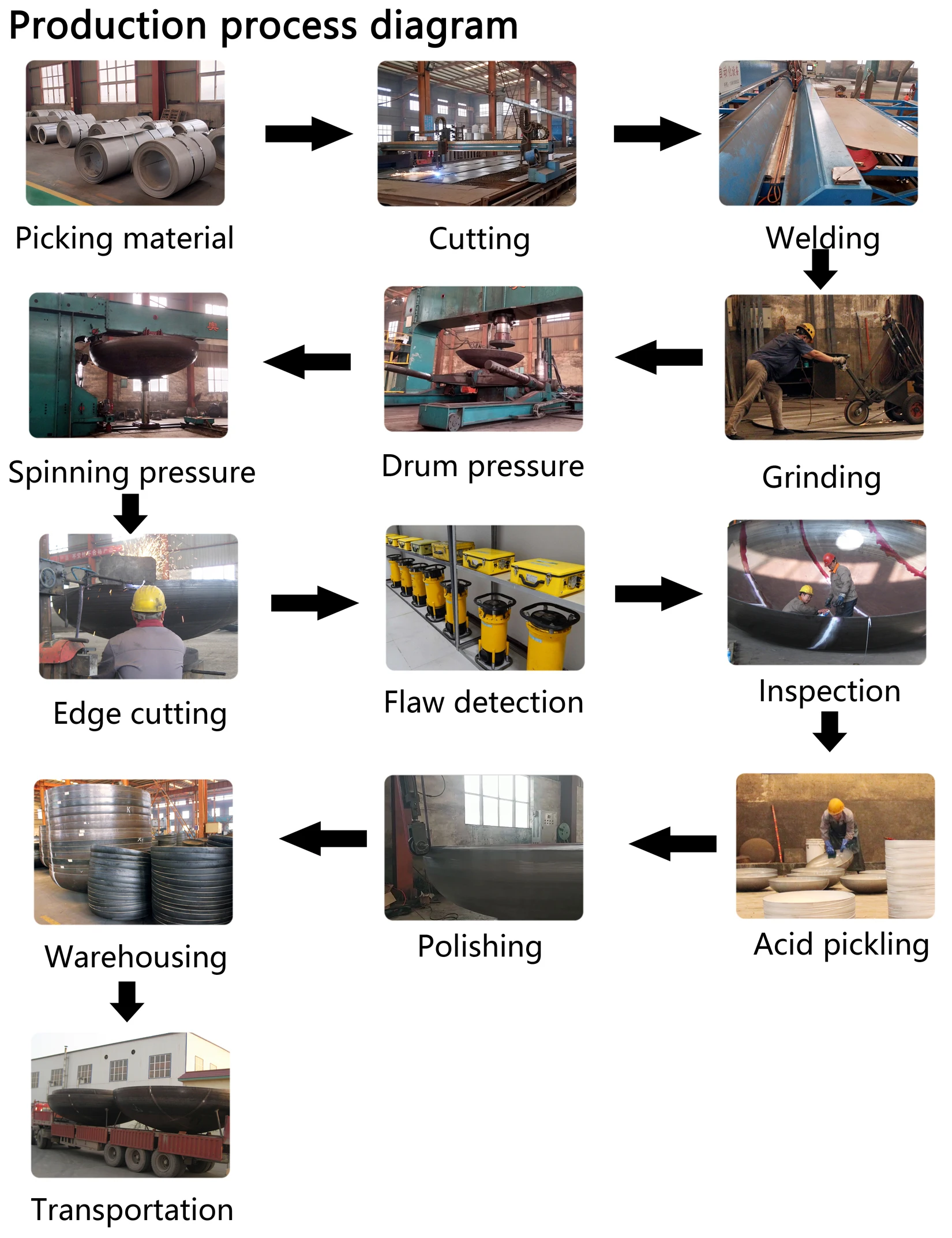 The company mainly produces and processes various elliptical heads, spherical heads, dished heads, flat bottom heads, spherical