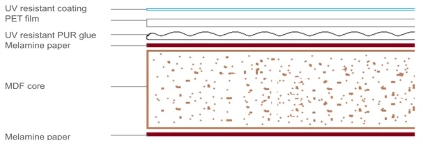 Product | PET FACED MDF | Core | E0 MDF 730KGS/CBM | ||