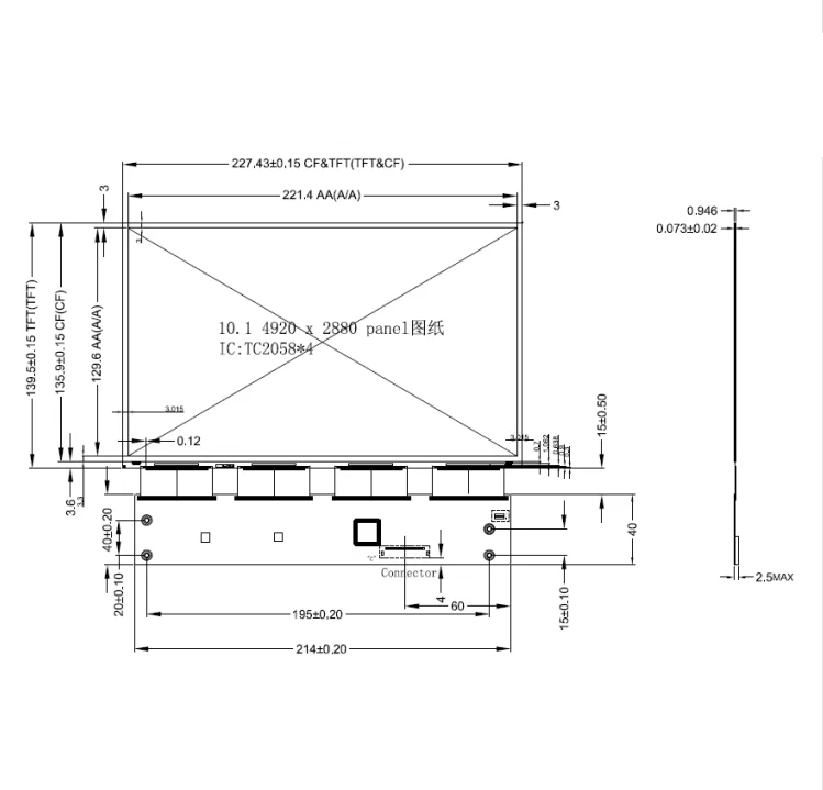 5.5'' 4K LCD with driver board | 2160*3840 | MIPI (2 ch, 4 data lanes) , 60 pins Connector | 85/85/85/85 (Typ.)(CR≥10) | RGB | |