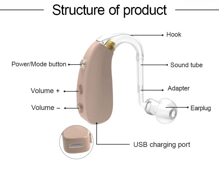 Hot sale batteries back of ear hearing aid