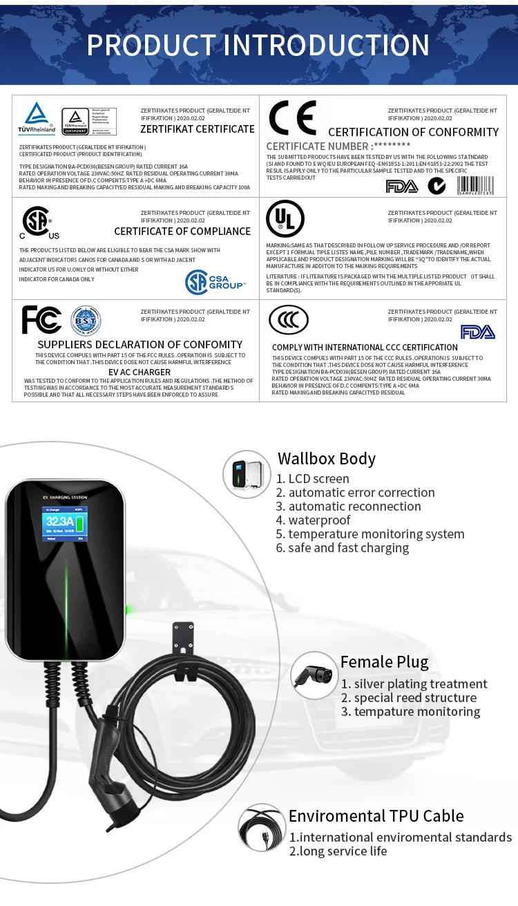 BESEN is a manufacturer specializing in EV charging products. Apart from the factory, our company has other departments of design,R&D and customer service. Our main products include EV charging station, EV cables and EV connectors. To better fit different market preferences and needs, we offer not only standard products but also customized ones upon requests.We are devoted to update products, complete project solutions and after-sales service to ensure top ranks of our customer satisfaction in the market. We are committed to become the most professional EV charging equipment manufacturer in China and keep striving for it.