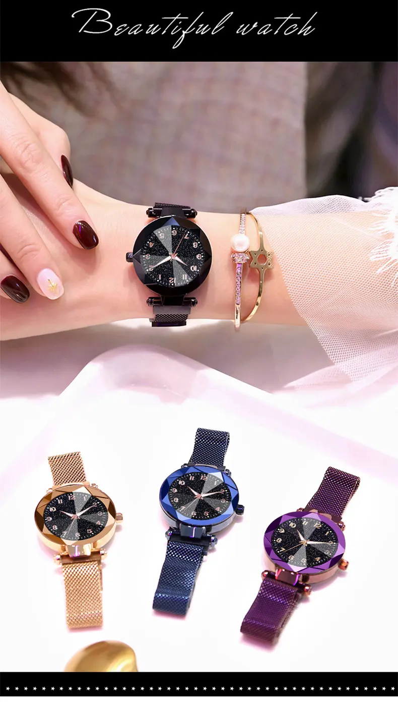 Luxury Women's Watches Bracelet Quartz Stainless Steel illuminate Magnet watch women Starry Sky Wrist Watch Ladies Dress Clock