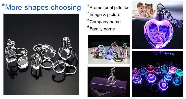 Top Selling Custom Cheap Keychain Led Heart Cute Key Ring Clear Heart Shaped Crystal Led Car Logo Keychain