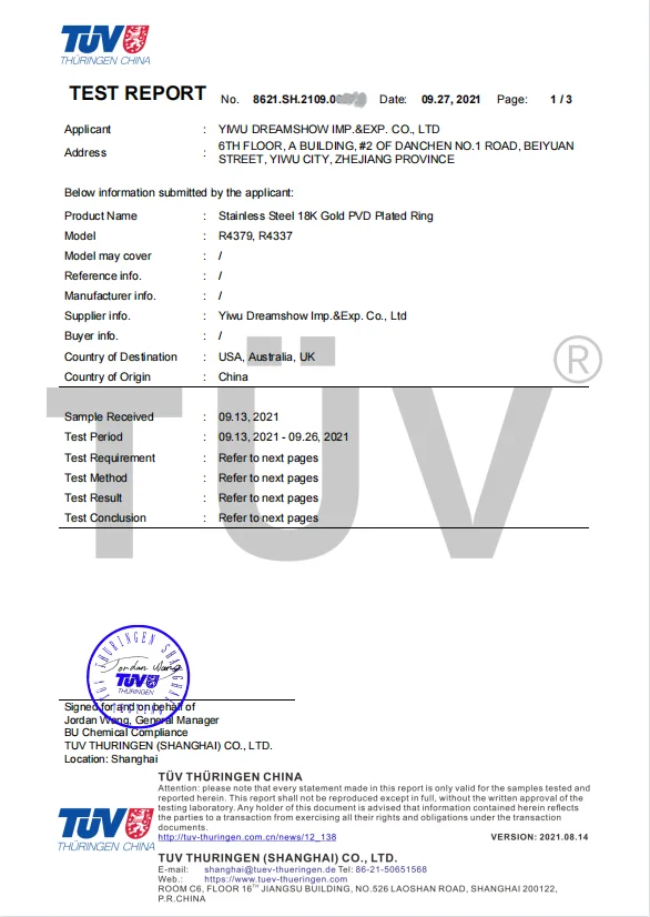 A6: All our products have CA pro65 and EC1907/2006 inspection certificate .