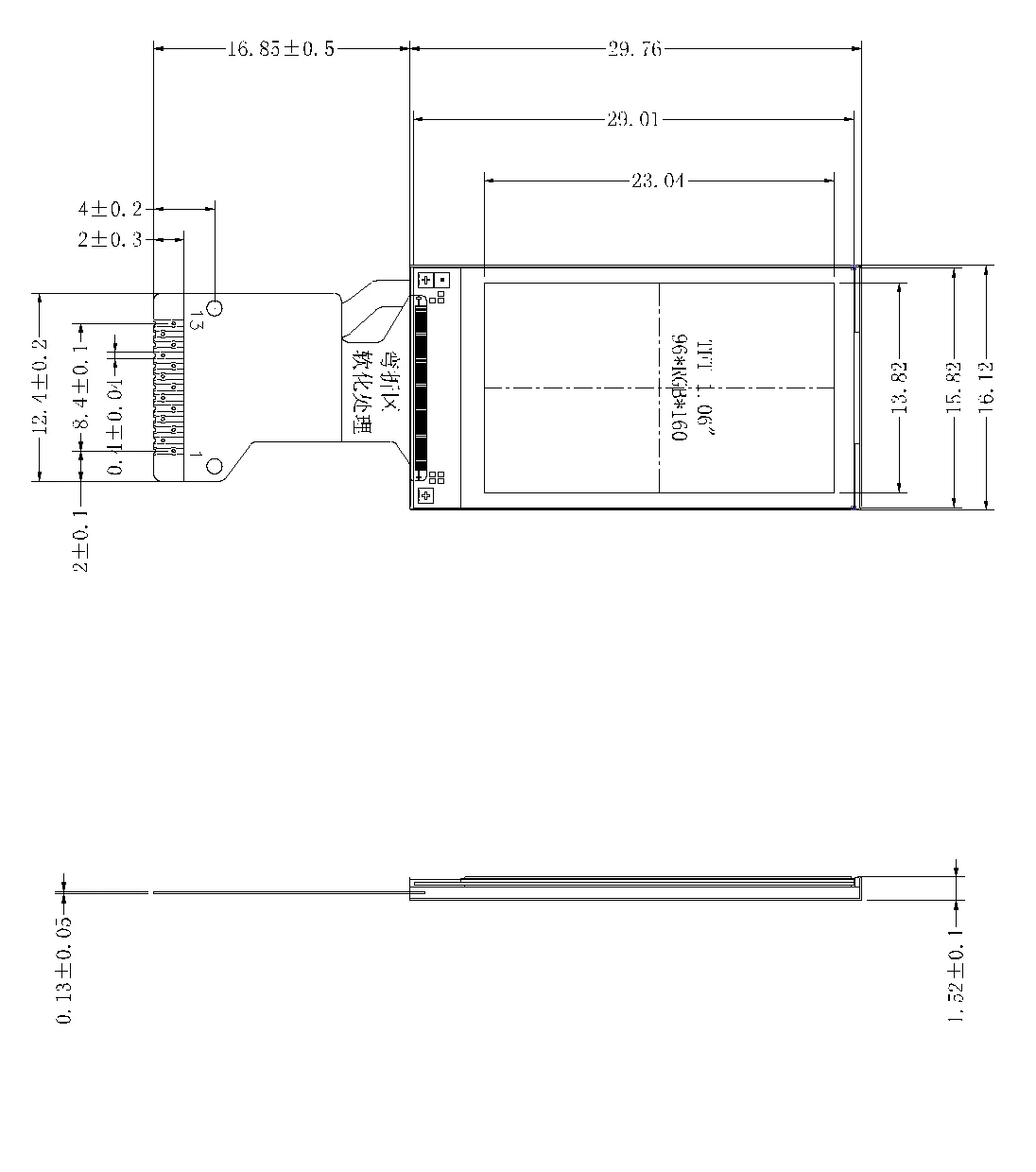 Resolution | 96(H)xRGBx160(V) | Pixel |