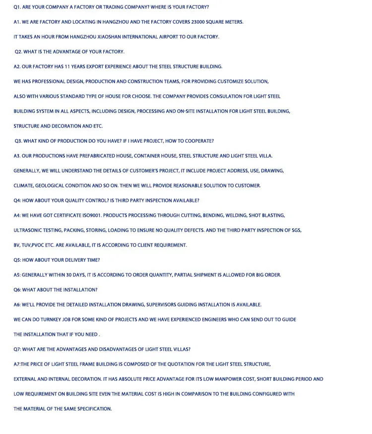 Characteristics of WEIDU produced light villa are as follow: