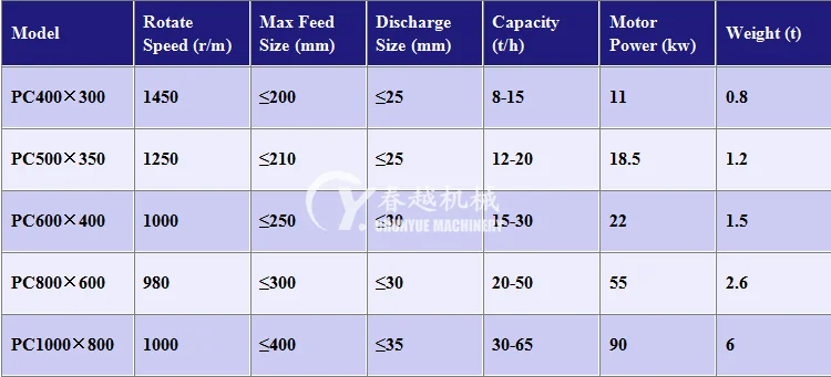 hammer crusher machine parameters: