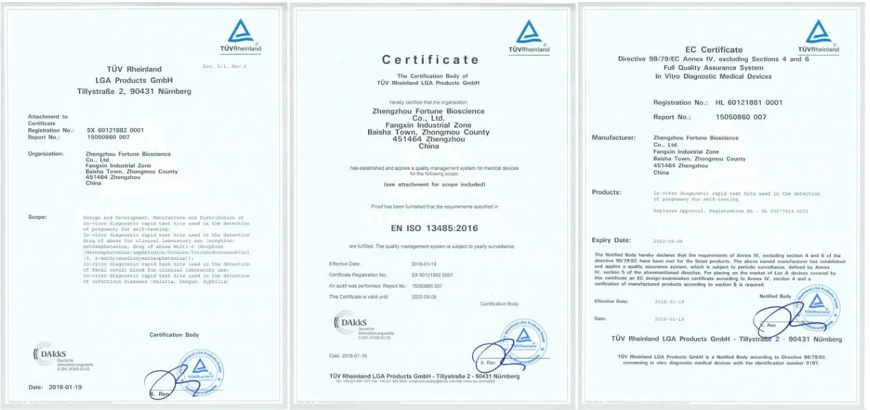 A: We have obtained CE 0123, ISO13485 and ISO 9001 certificates.