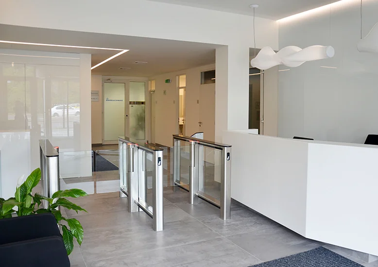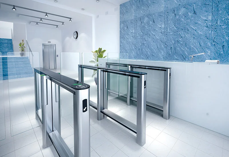 The Zento Speedlane Swing has been thoughtfully designed with aesthetics in mind. It consists of slim, V-shaped, tapered cabinets and smooth, swinging-motion glass barriers (available in various heights). The medium security speed gate has a compact and