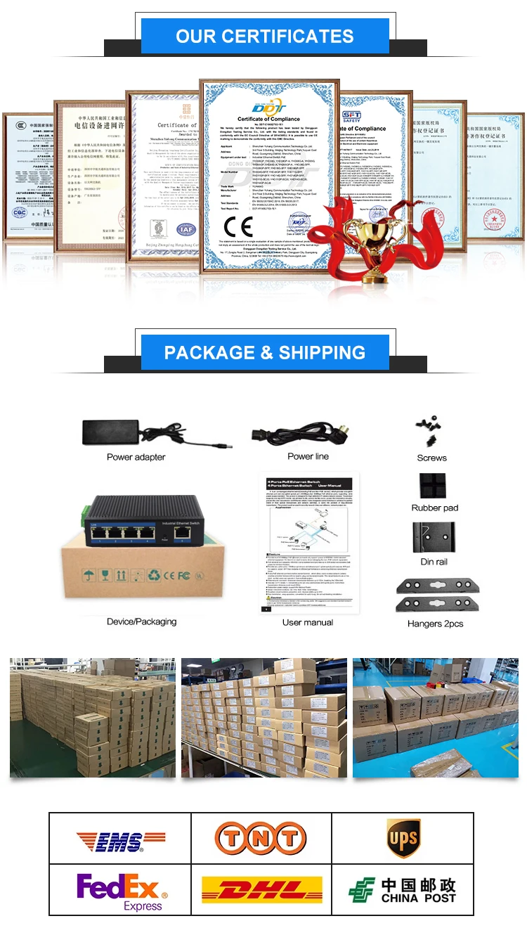 Industry Standard | FCC CFR47 Part 15,EN55022/CISPR22, Class A IEC61000-4-2 (ESD): ±8kV (contact), ±12kV (air) IEC61000-4-3 (RS): 10V/m (80~1000MHz) IEC61000-4-4 (EFT): Power Port: ±4kV; Data Port: ±2kV IEC61000-4-5 (Surge): Power Port: ±2kV/DM, ±4kV/CM; Data Port: ±2kV IEC61000-4-6 (CS): 3V (10kHz-150kHz); 10V (150kHz-80MHz) IEC61000-4-16 (Common mode conduction): 30V (cont.), 300V (1s) |