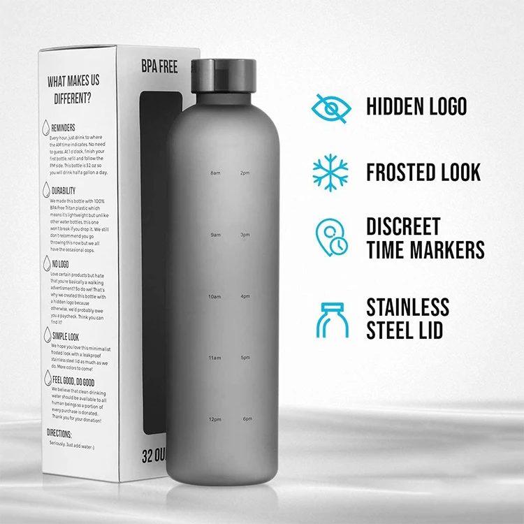 Motivational Quote & Time Marker | he motivational time marker reminds you to drink enough water throughout the day and the volume marker gives you a clear view of the water capacity. |