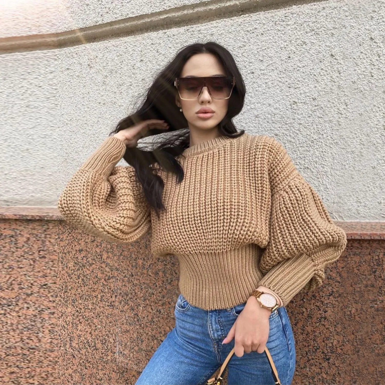 ITEM | Winter Sweaters Women Chic Pullovers Color Block Blouse Patchwork Long Sleeve Lace-Up Turtleneck Casual Korean Knitted Tops |