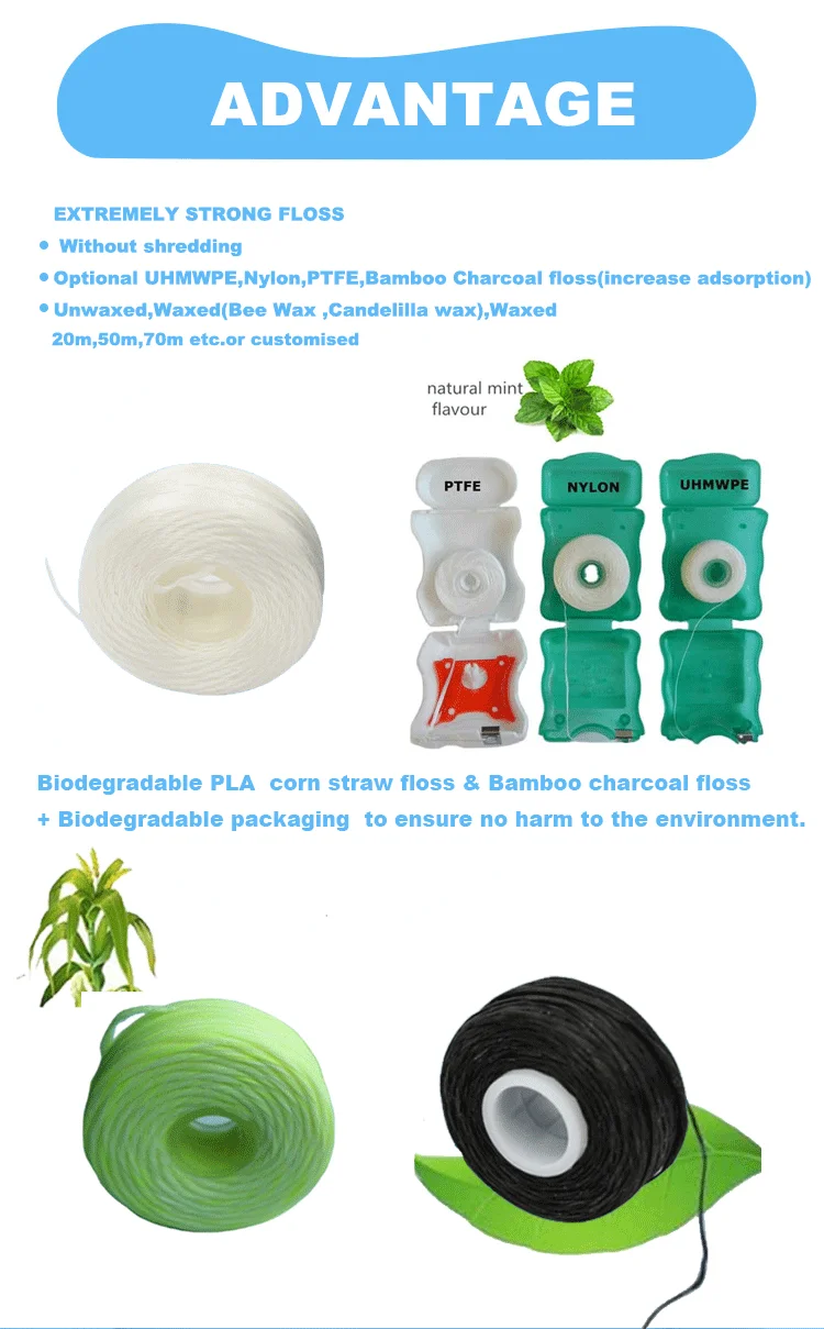 Food Grade Nylon, UHMWPE and PTFE(Teflon fibers), bamboo charcoal floss