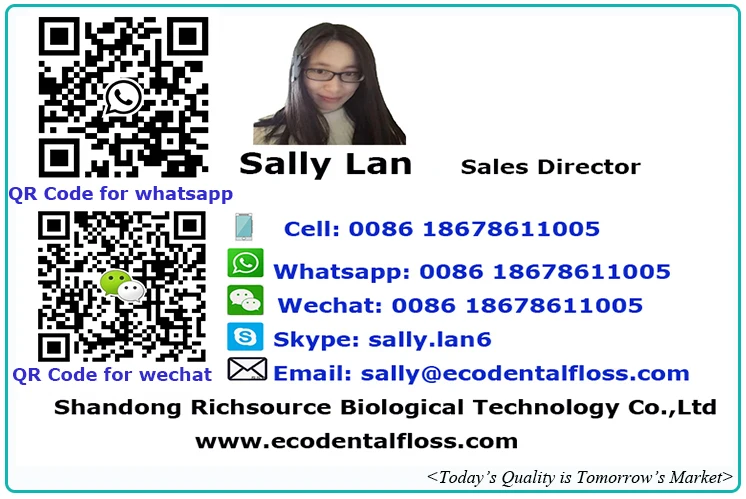 Shandong Richsource Biological technology Co.,Ltd is a professional manufacturer of 10 years experiences of dental floss,dental floss picks, interdental brushes and other related oral care products. We obtained more than 10 domestic patents by our strong reaseach and development DPT. and have continuously introduced our own brand new products to the market and also provide OEM/ODM services to help the clients with new products development as per their requests.Our products are popular in North America,South America,Europe,Southeast Asia,Africa and Australia etc.