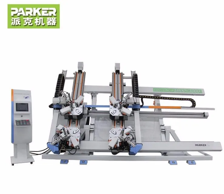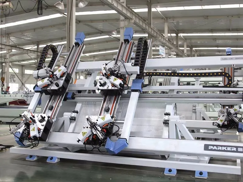 LJJZ4 - CNC - 1800 x 3000 aluminum Windows and doors four head CNC vertical Angle of extruding machine is my company independent research and development production of aluminum alloy doors and Windows set Angle of one of the processing equipment.It is one of the latest research and development of numerical control equipment with advanced technology, reliable performance, simple operation, high intelligence, etc.Is special equipment for high-grade aluminum Windows and doors, the Angle of the four corners connecting at one time code type rivet connection.The equipment technology has reached the international leading level.