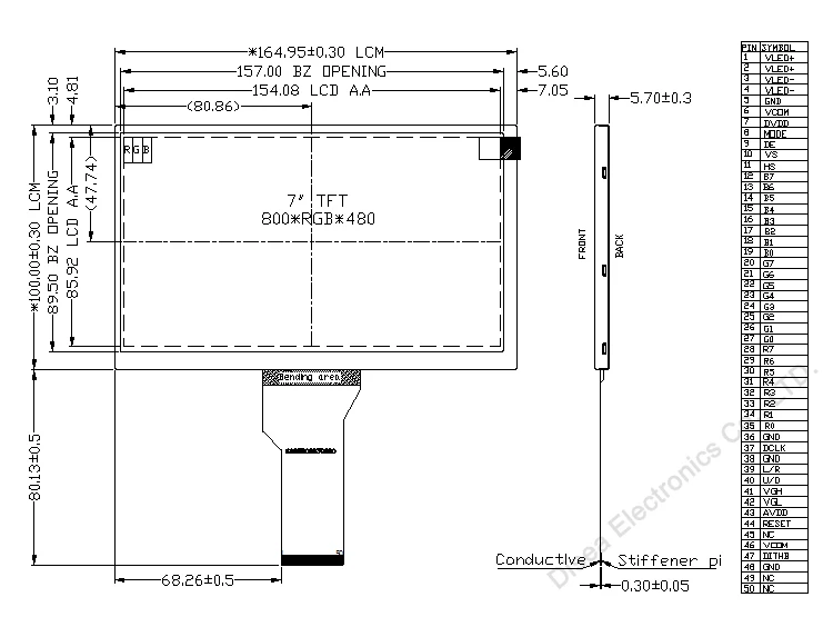 Mechanical Characteristics | LCM (W * H * D) | 164.95*100.00*5.70 | mm | |