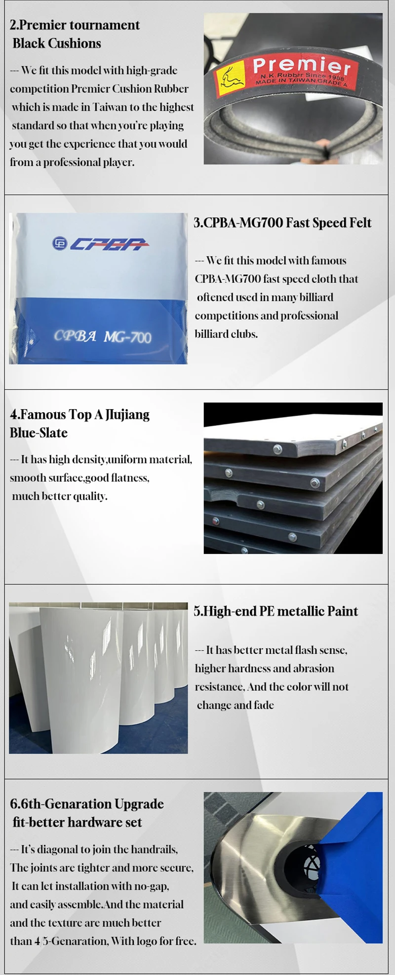 Q. How long is the warranty? Our standard warranty is 10 years for almost all table parts. Our tables are absolutely rocking solid,And they will look as good after 10 years as they did the day they were installed.