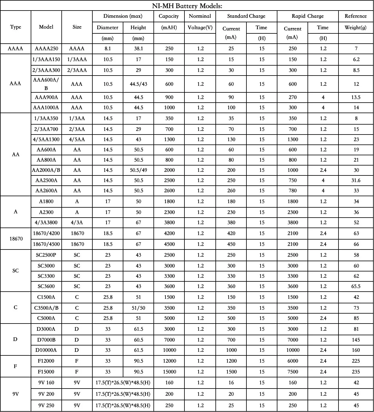 More than 1200 models battery