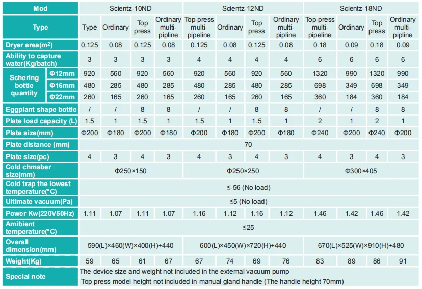 The ND freeze-dryer adds heating to the N-series, accelerating the drying process, saving energy, and providing heating curve settings with a variety of drying solutions for laboratory use. This series of freeze dryer is divided into four configurations: ordinary type, gland type, multi-manifold general type,multi-manifold gland type, with pre-freeze function.