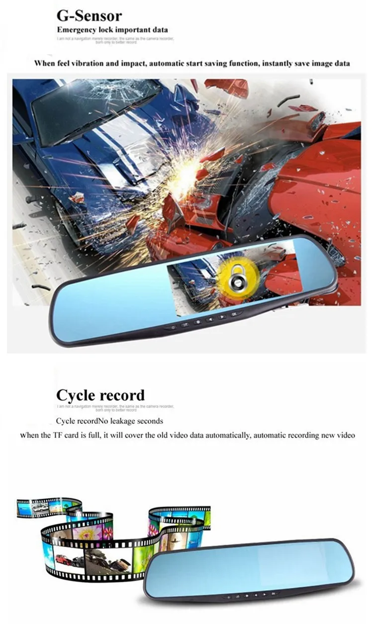 *2-channel recording DVR mirror: front and rear camera