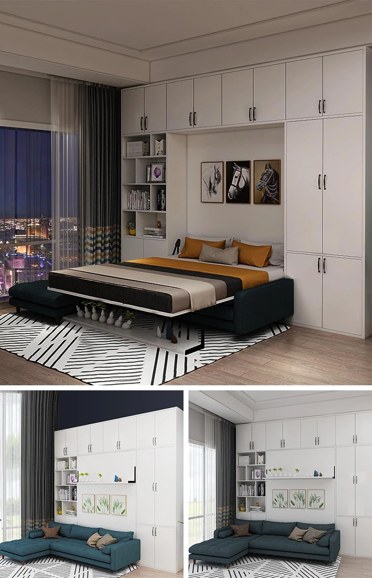 A: There are two ways to order: 1. You only order the functional parts (steel parts with bed frame, the parts we show in the picture), Then you make the cabinet part, and we will send you the drawing of the cabinet (mattress size requirements, etc.) 2. If you think our price is favorable to you, you can order a complete set of functional parts + cabinets + mattresses from us. |