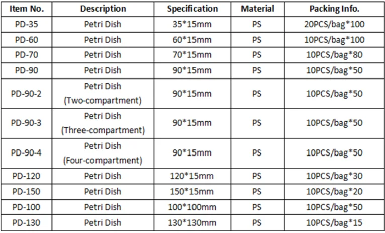 Plastic petri dishes are manufactured from crystal polystyrene (PS) material. Use for microbiological products, as well suspension