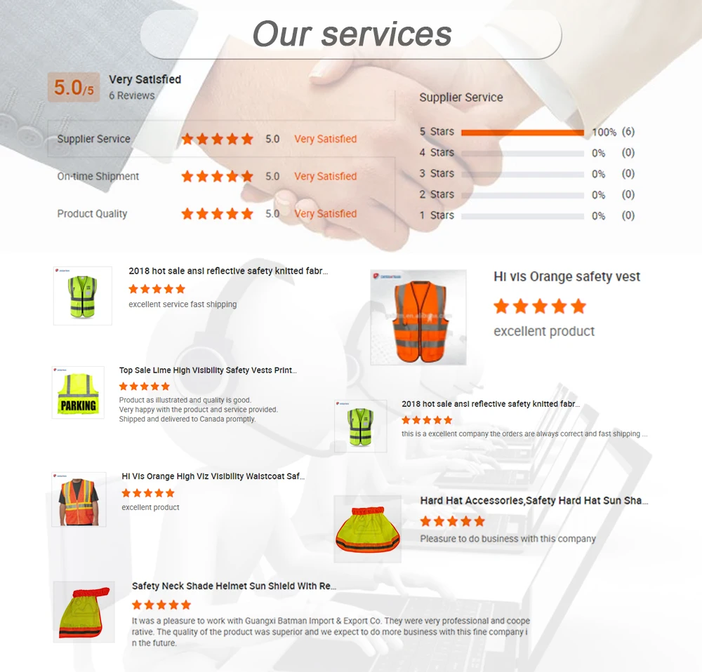 Guangxi Batman Import & Export Co., Ltd is specializing in manufacture and export of safety clothing and other reflective products. We also offer all kinds of OEM services. We have established long-term stable and good business relationships with many manufacturers and wholesalers around the world and got high praises from them.