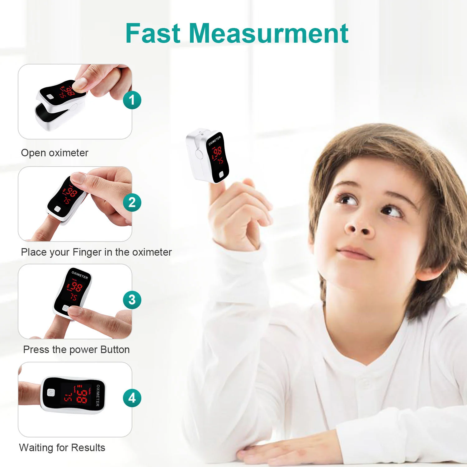Oxygen Saturation (%SpO2): 1% Pulse Rate (PR): 1 bpm | Specification of alkaline batteries: 2 AAA(LR03) Operating current: 25-50mA Operating mode: Spot checking Degree of production against hazards of explosion: IP22 Physical specification |