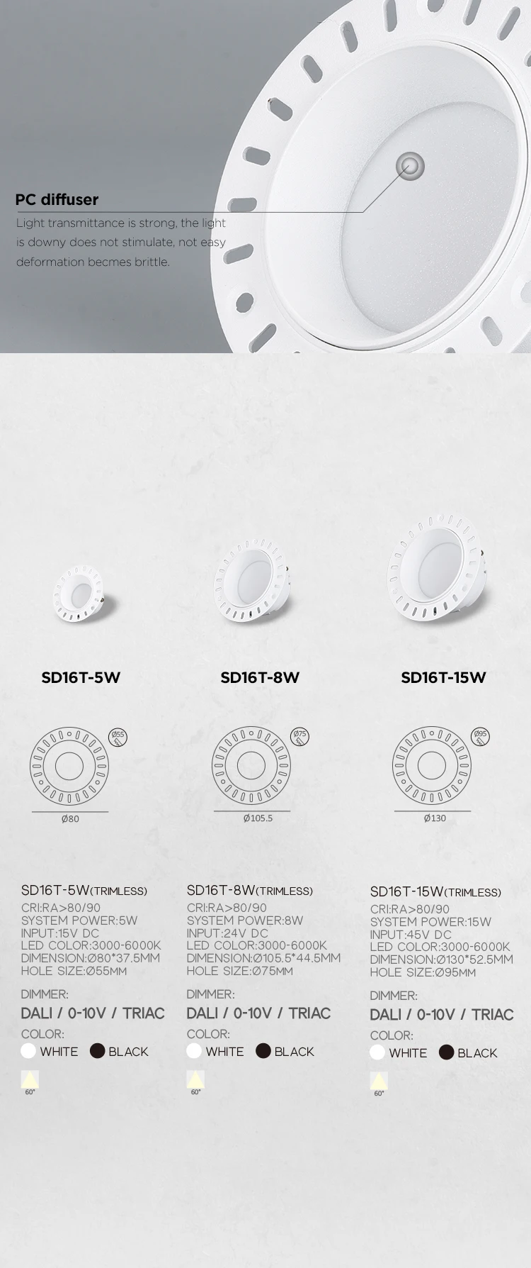 Cut out Size | 55mm/75mm/95mm | ||
