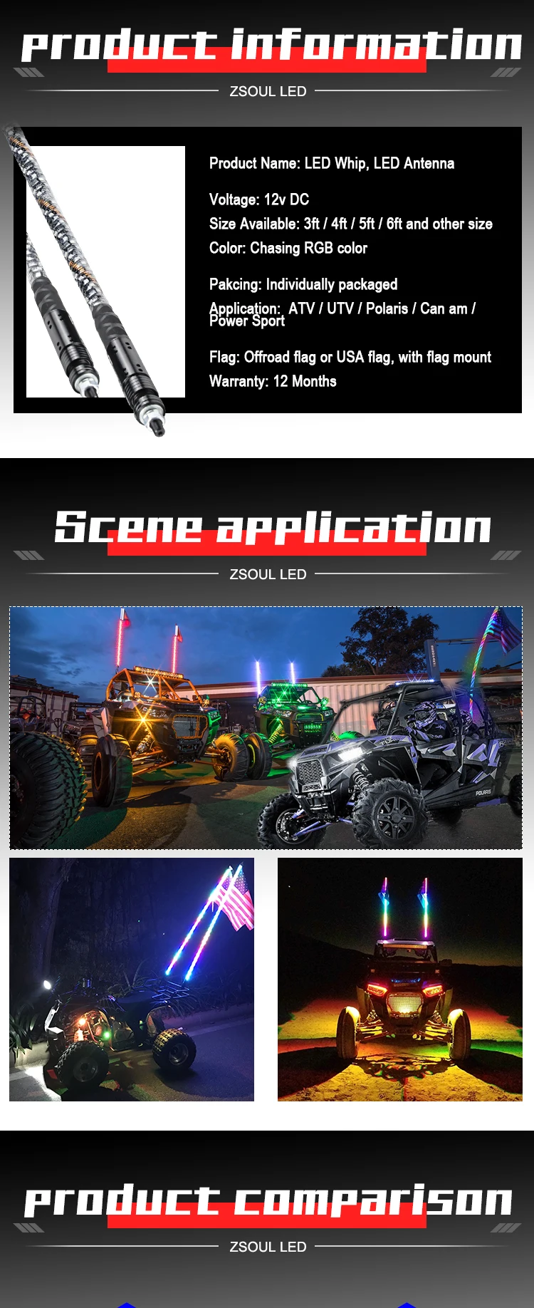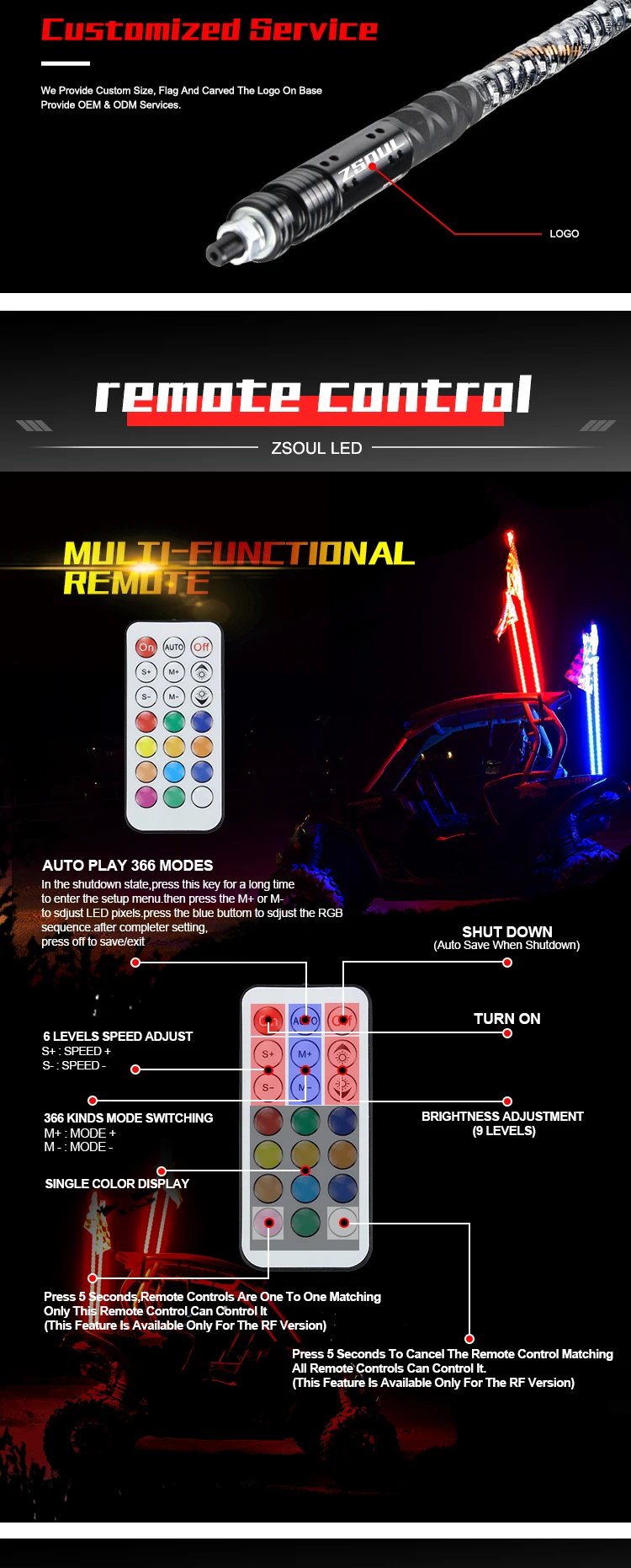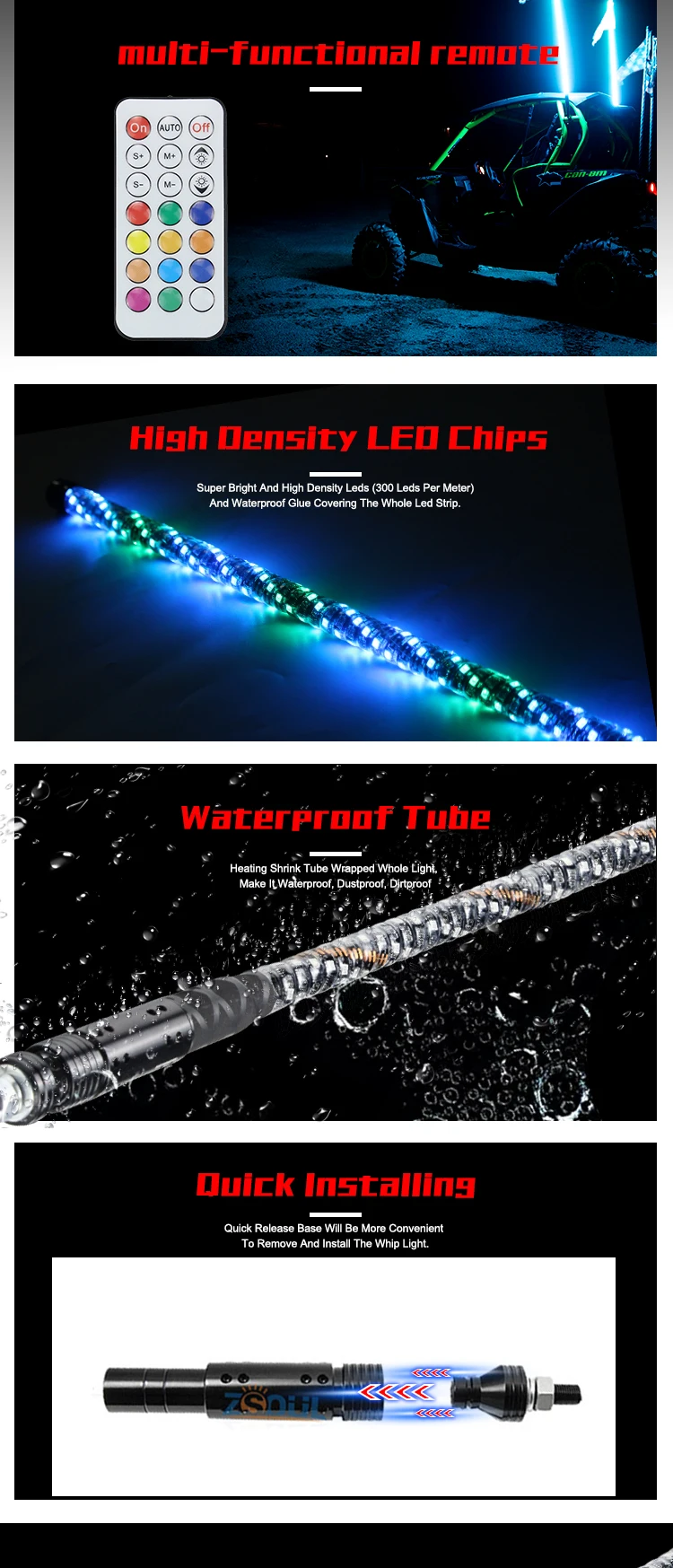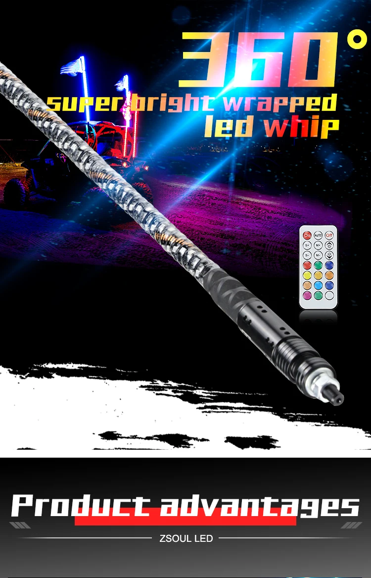 Item Name | 2/3/4/5/6 Feet RGB Chasing Color Remote Control Quick Release Led Whip Light antenna safety flag For ATV UTV Buggy RZR | ||||
