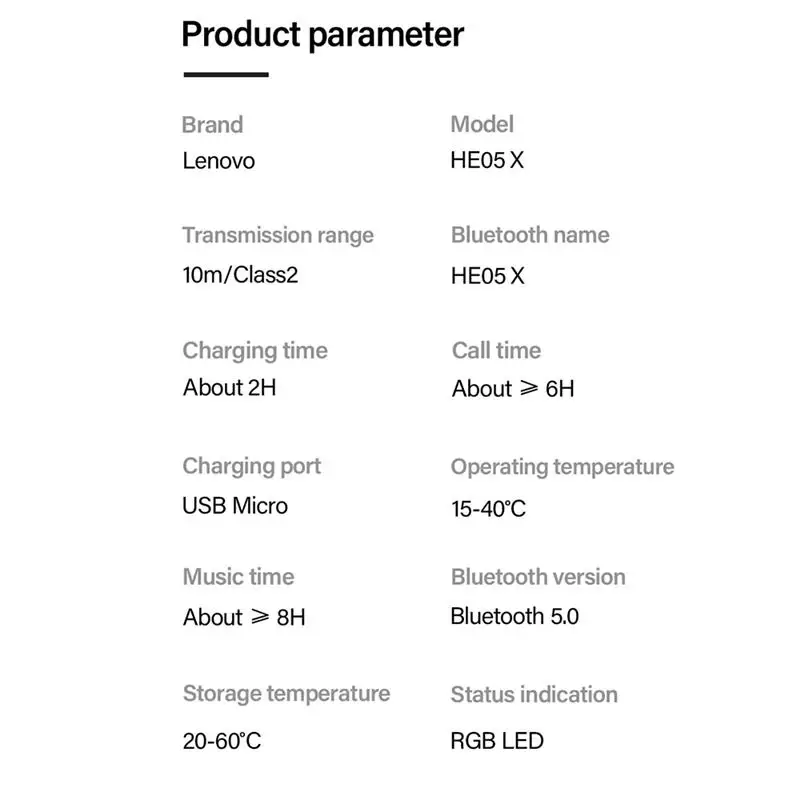Product name | Best Sellers 2021 Original Lenovo HE05 Move Free Neckband Bluetooth Battery For Lenovo headphone electronic products earphones | ||||||