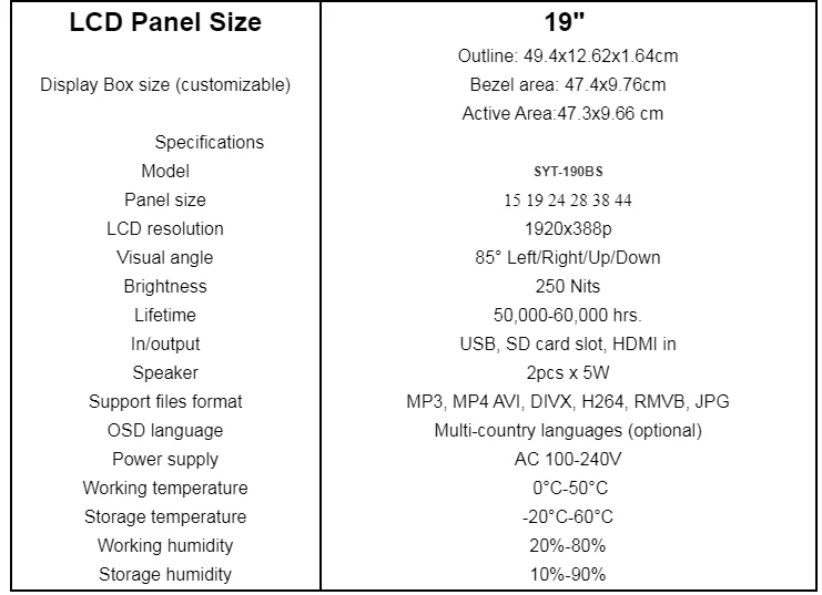 Brightness | 6500cd/m2/7000cd/m2 | Lifetime | 100000hours |