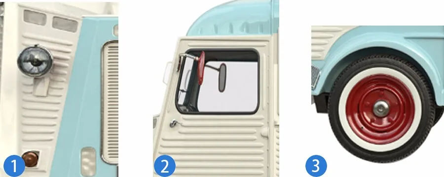 1.real lights 2. windows 3.wheels