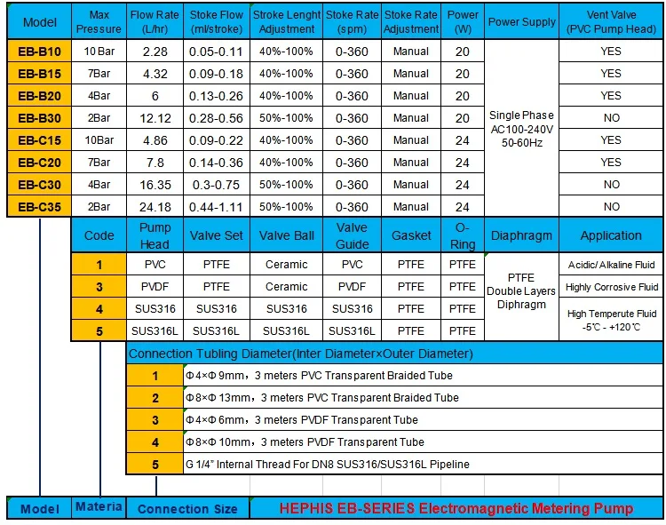 HEPHIS E-SERIES Electromagnetic diaphragm metering pump is suitable for water treatment equipment and water treatment engineering.