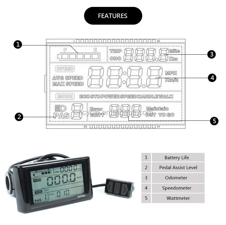 display | Show Multifunctions, speed, range, time, max speed adjust, 5 PAS system and so on | ||