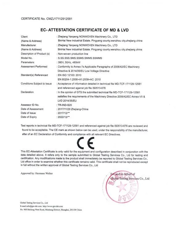 ZHEJIANGYANPENG NON-WOVEN MACHINERY CO.,LTD,located in pingyang Economic Zone, Wenzhou City,is a large-scale enter prise producing PP spunbonded nonwoven fabric production line.
