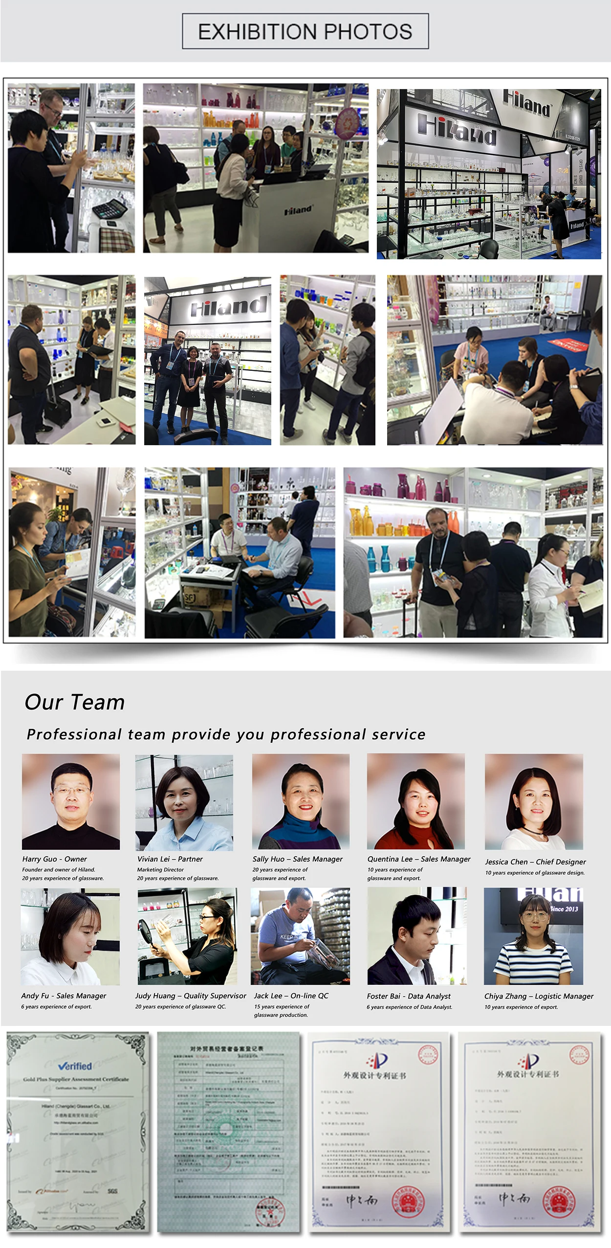 The founder and most of the key persons of Hiland all have been in the field of glass industry for more than 15 years, have rich experience of marketing, design and production, can well understand the requirements of the customer.