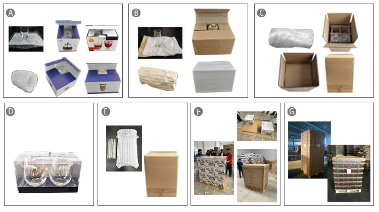 A—white paper + bubble bag +giftbox, can be set of 1, set of 2, set of 4, set of 6 and 8. B—white paper +corrugated paper + brown box or white box