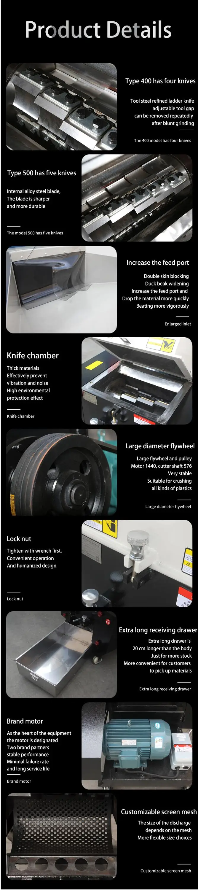 Crushing Capacity(KG/H) | 400-700 | 450-800 | 650-1300 | 750-1500 | |||