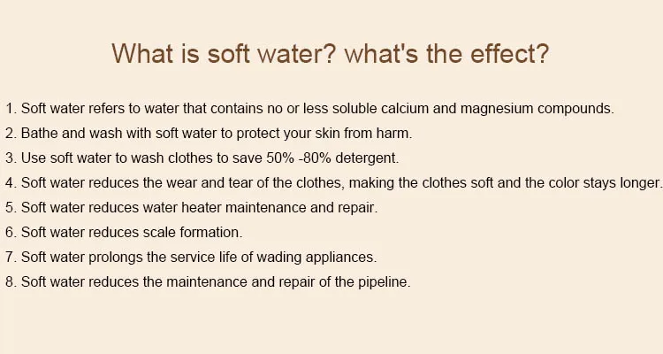 A: Usually the resin can be use for 5years, it can be adjusted according to your water hardness.