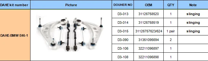 Aluminum Front Lower Suspension Part Control Arm kit 8 pcs for BMW 3 E46 1998-2005 31126758520 31126758519 31126757623 31126757624 31351095694 32211096897 32211096898