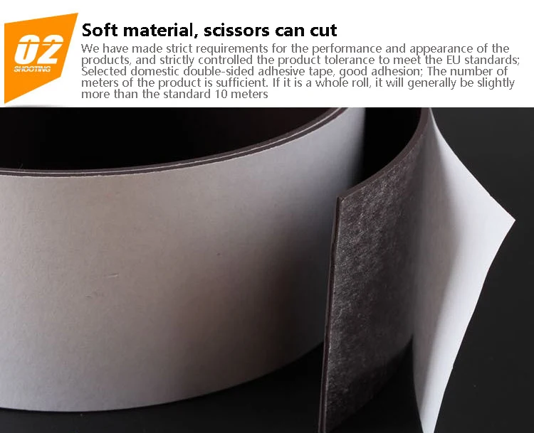 there are three kinds of rubber soft magnetic routine. One is the prime magnetic strip, which is the magnetic strip itself, and both sides are black; One is the back adhesive magnetic strip, that is, paste up double-sided tape on the non-magnetic side (instead of paste up tape on both sides), and the double-sided tape is different from ordinary 3M tape; the other is paste up PVC film on the non-magnetic side, which has a variety of colors and can be customized.