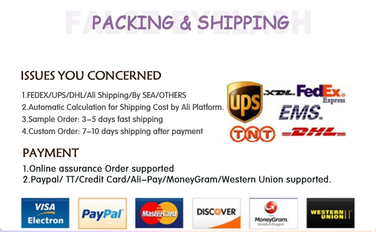 All kind of false eyelashes with 3D mink, fiber, and mixed material. Also, the best customs service from us.