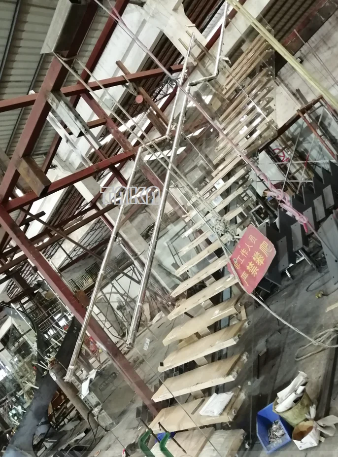 Tread thickness: 1) Glass: 10+1.52pvb+10mm or 12+1.52pvb+12mm; 2) Solid wood: 38mm or customized; 3) Stone: 30mm or customized; 4) Steel: 6mm or customized;