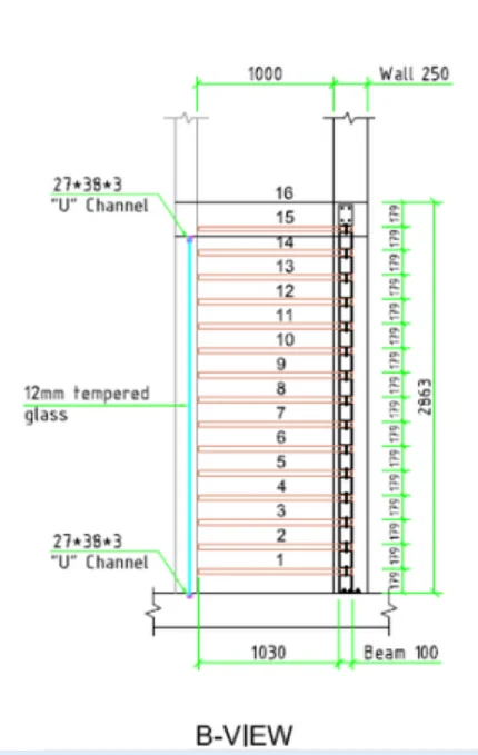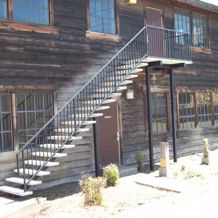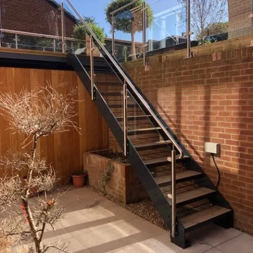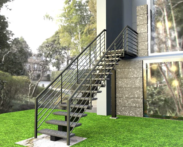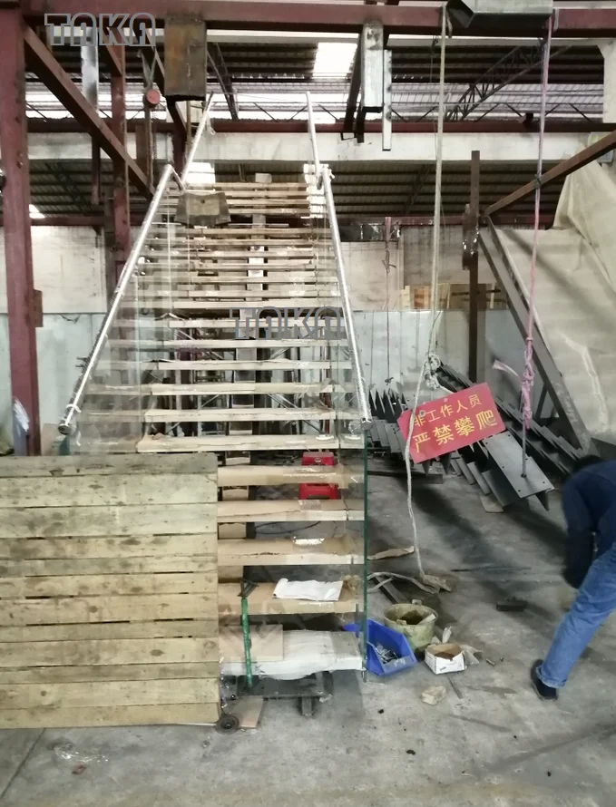 Railing options:glass rail, steel rail or without; Riser height: 180--200mm; Stairs' width: 1000mm or customized.