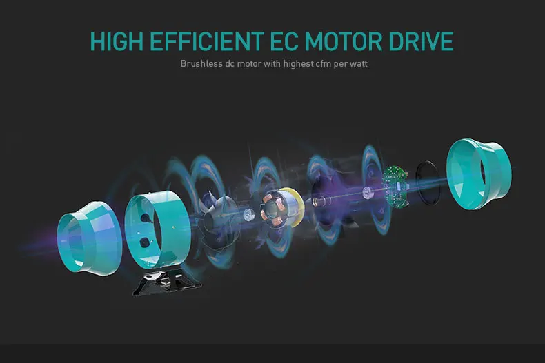 1.Smallest volume in same size, easy to install in family and factory.2.EC motor technology, only 50% energy cost compared with AC motor duct fan.