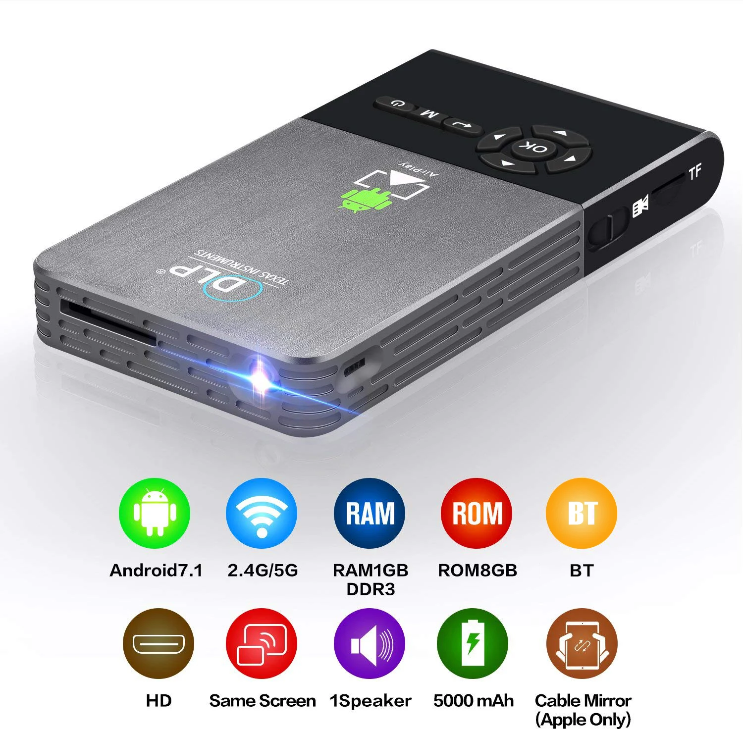 Product Name | Home Theater projector | Interface Definitions | 1*TF Card: Max 32G |