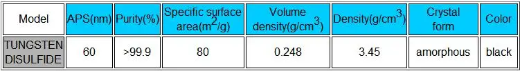 Tungsten Disulfide powder Purity | >99.9% |