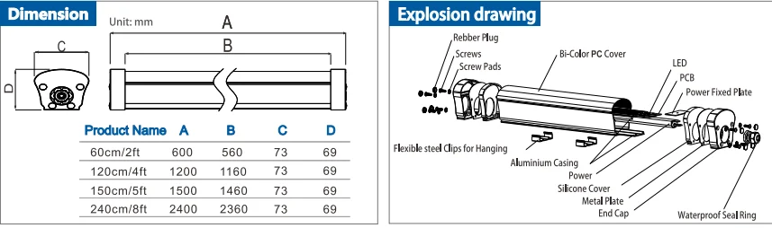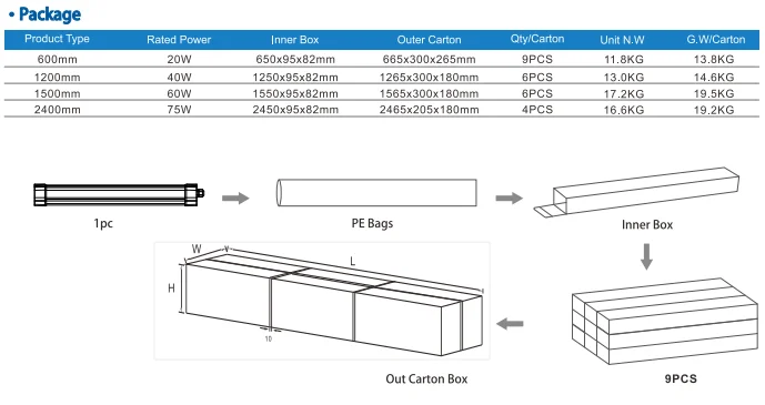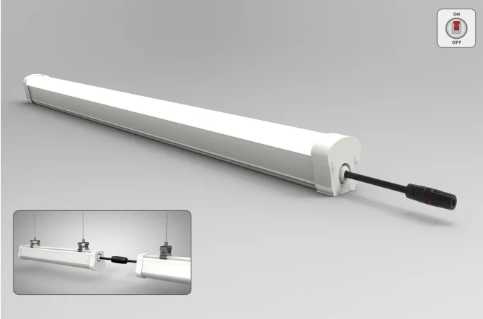 The Professional ipL ED tri-proof Linear lighting Fixture / LED Vapor Light/Tri-Proof is Water-proof, Dust-proof, Damp-proof, and Pressure-proof. It can be installed as one light or linked together in a series to create a long strip of lights.
